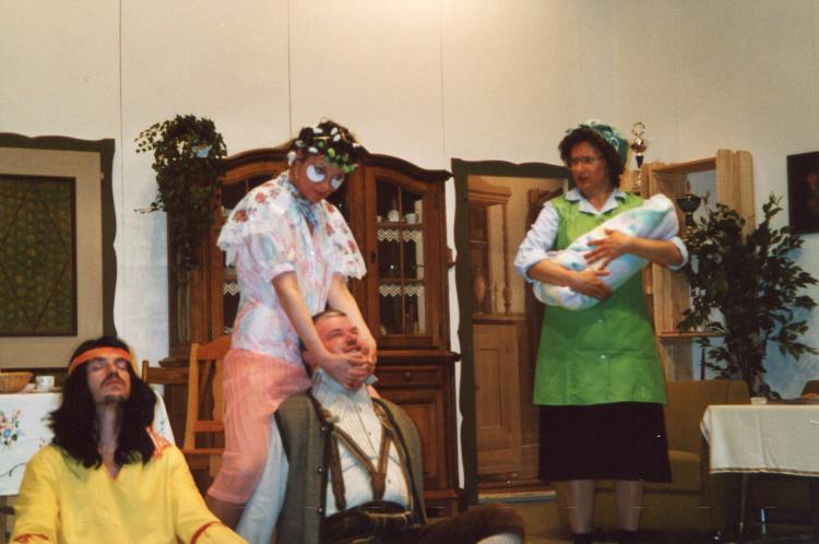 Ein junges Ehepaar lädt zur Tauffeier ein. Es stellt sich gleich die Frage, ob das wohl gut geht, wenn zwei grundverschiedene Großmütter gleichzeitig um das gemeinsame Enkelkind wetteifern. Natürlich will auch der frisch gebackene Opa bei seinem Enkel nicht zurückstehen. Unerwartet taucht auch noch der arbeitsscheue Bruder des jungen Vaters auf und lässt auf seinem Teppich mitten im Wohnzimmer nieder, um zu meditieren. Große Turbulenzen gibt es, wenn auch der Opa versucht , vom „Gurusohn“ zu lernen wie man durch Yoga und körperliche Verrenkungen zu geistigen Höhen gelangt. Vergeblich bemüht sich der Pfarrer um ein Taufgespräch bei der jungen Familie. Nachdem die beiden Großmütter ein starkes Regiment führen, die Wohnung umräumen, Marmelade kochen und putzen was das Zeug hält, sehnt sich das junge Paar endlich wieder allein zu sein. Um dies zu erreichen, verkünden sie, dass sie dringend in Urlaub fahren müssen Die liebe Familie verlässt fluchtartig die Wohnung, denn sie wollen keine Verantwortung für das Baby übernehmen.