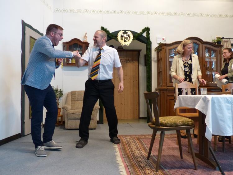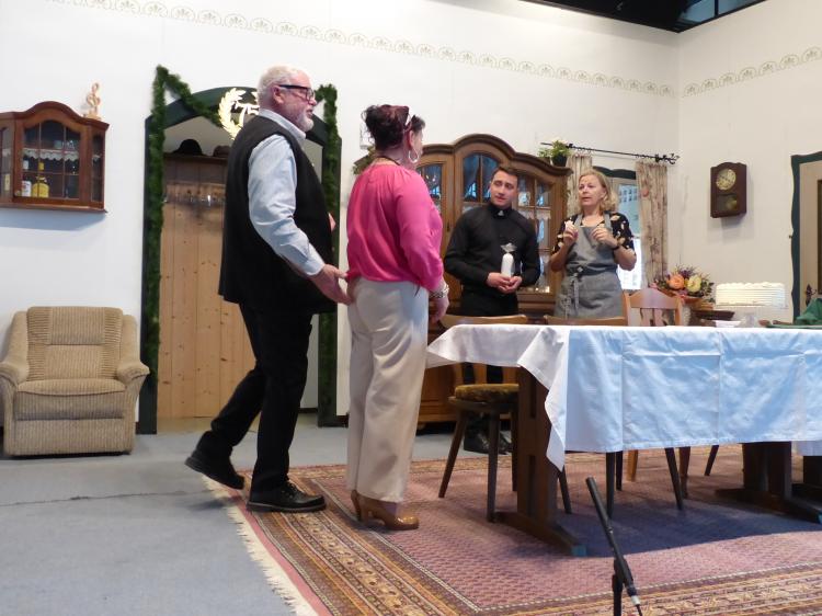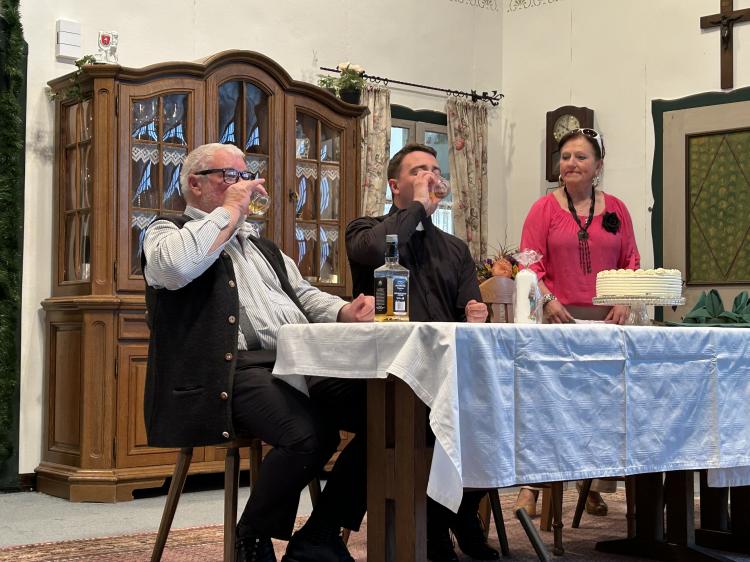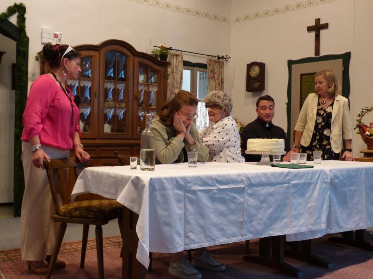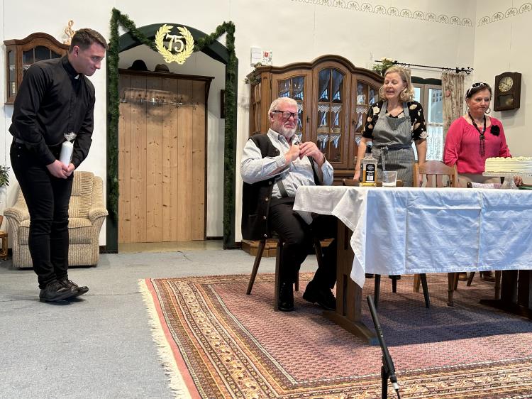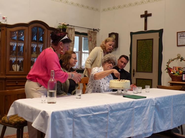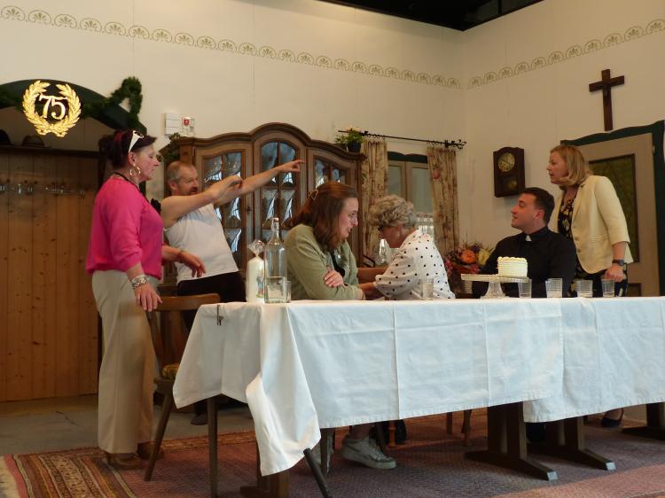 Sie will, dass es ein schönes Fest wird und das nicht ohne Hintergedanken. Sie will Oma und Opa ins Altersheim abschieben und das soll an diesen Tag mit der Verwandtschaft besprochen werden. Alles hat sich Luise wundervoll vorgestellt. Doch dann kommt es ganz anders. Jeder hat seine eigenen Vorstellungen, wie dieses Fest gefeiert werden soll. Besonders die Jubilarin. Außerdem spricht sie nicht mit ihrem Mann und den jungen Pfarrer will sie auch nicht sehen. Der Opa hat nur Unsinn im Sinn, weil es ihm nicht passt, dass er nicht der Mittelpunkt ist, Jochen, Luises Mann, betrinkt sich. Der Pfarrer versucht sein Bestes, aber er kennt die Jubilarin noch nicht. Der Bürgermeister hat eine Geburtstagsansprache vorbereitet, aber er kann gerade mal einen Witz erzählen. Und am Schluss haben Oma und Opa noch eine dicke Überraschung parat.